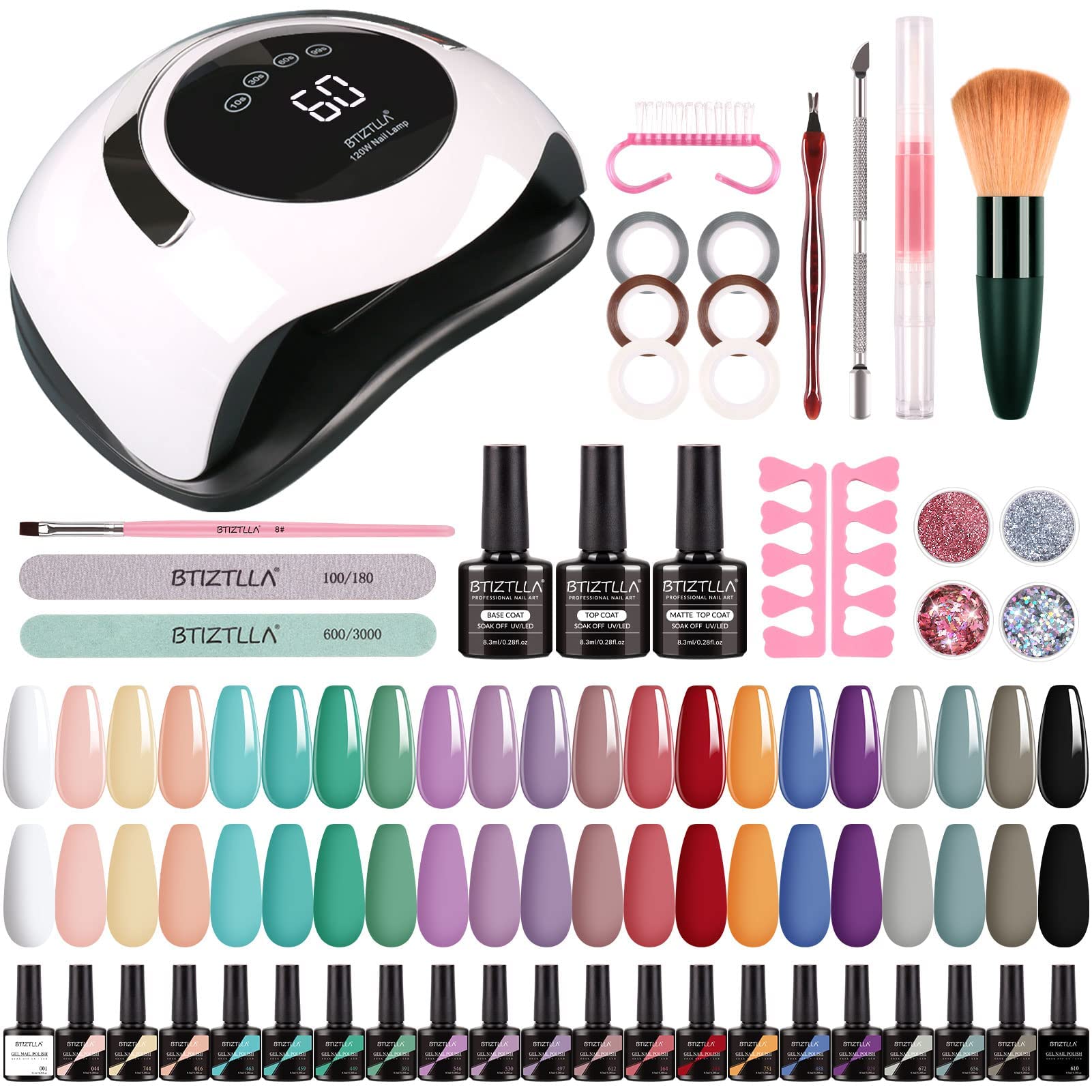 21 Colors Gel Nail Polish Kit With Uv Light 120w Nail Dryer White Nude Purple Gel Nail Polish Set Uv Led Nail Lamp No Wipe Base Top Coat Nail Art Decorations Manicure