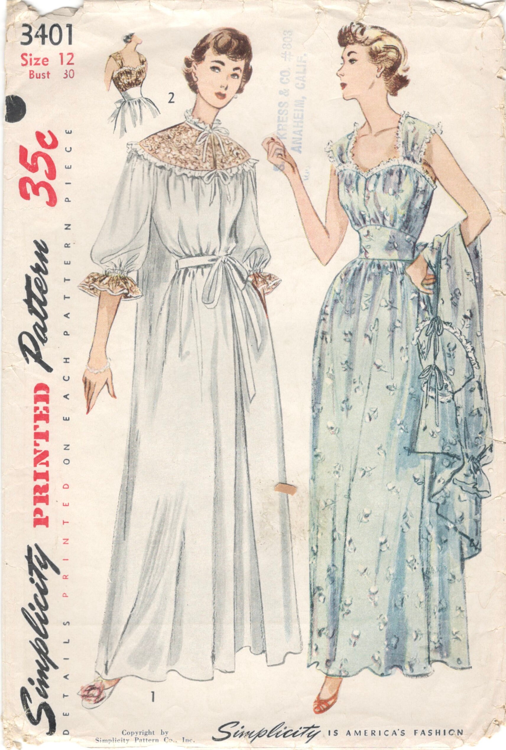 Simplicity 3401 1950s Misses Nightgown And Negligee Pattern Etsy Sweden