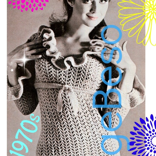 Easy Dress Knitting Pattern Sexy Flattering Ruffled Neckline Etsy Hong Kong