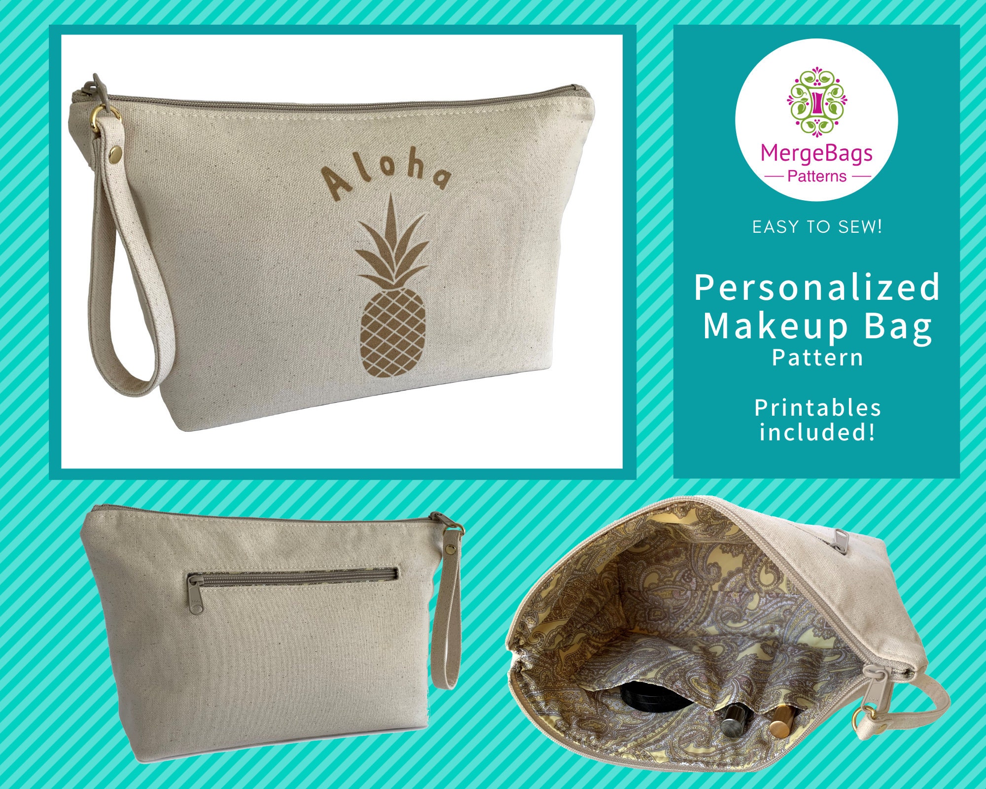 Large Makeup Bag Pdf Sewing Pattern Zippered Cosmetic Case Etsy Israel